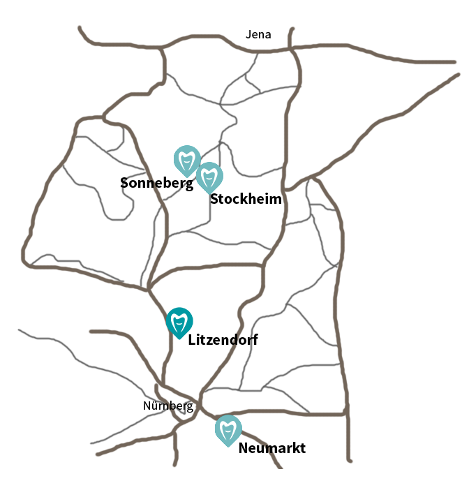 Unser Standort in Litzendorf ermöglicht eine effiziente und zeitnahe Versorgung der Region Oberfranken mit fortschrittlichen dentaltechnischen Lösungen. In enger Zusammenarbeit mit unseren Partnerunternehmen in Saalfeld, Sonneberg und Neumarkt stellen wir sicher, dass modernste Technologien und hochwertigste Materialien auf direktem Weg zu Ihnen gelangen.